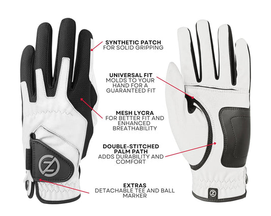 Zero Friction Men's Compression Golf Glove (4 Pack + 16 White Tees)
